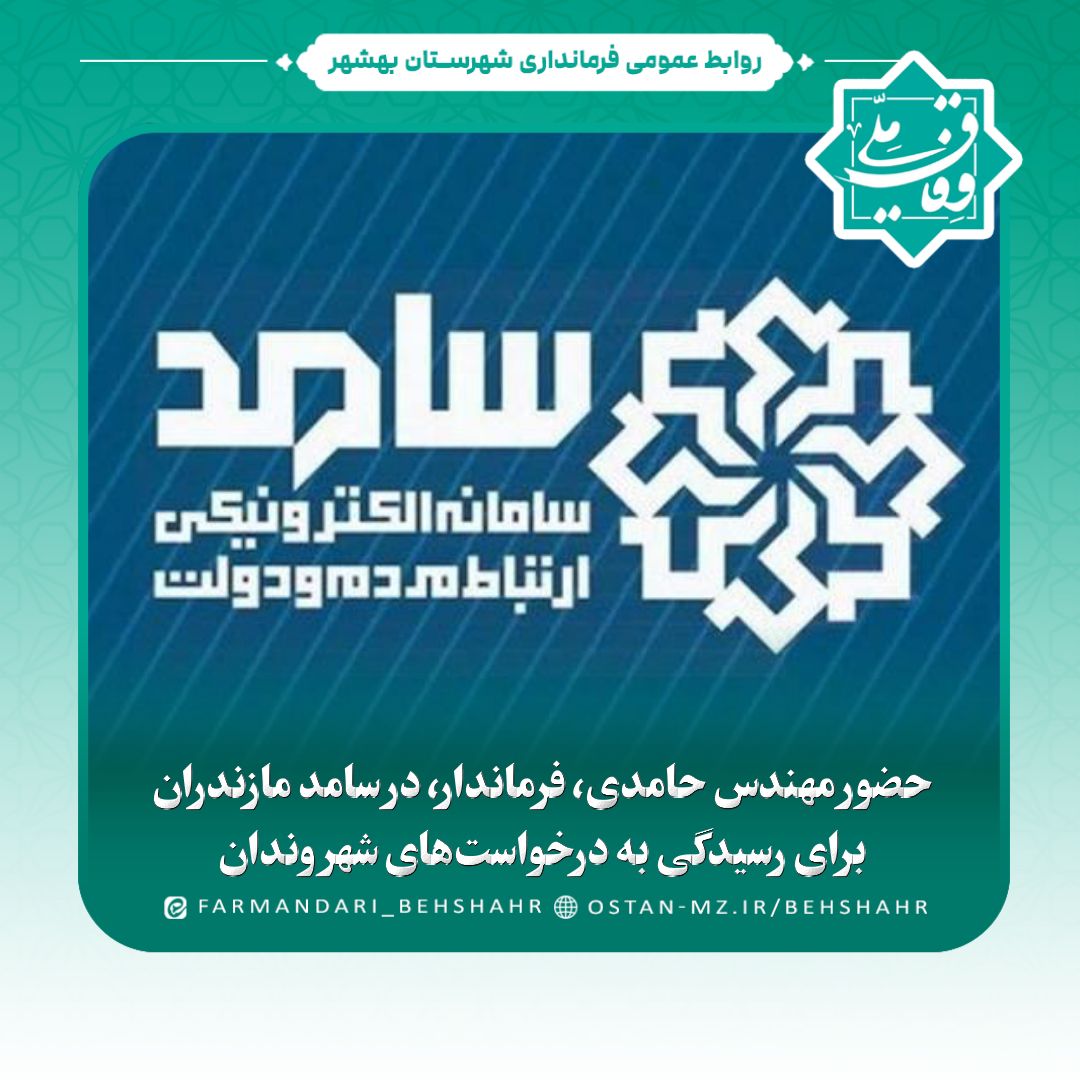 در راستای اجرای برنامههای دولت و با هدف تقویت ارتباط دوسویه میان مردم و مسئولان، مهندس حامدی، فرماندار، روز چهارشنبه ۳۰ مهرماه از ساعت ۹ تا ۱۱ صبح در سامانه سامد استان مازندران حضور خواهد یافت.در این برنامه، شهروندان میتوانند از طریق تماس با شماره ۱۱۱ سامد، مسائل، مشکلات و پیشنهادهای خود را مستقیماً با فرماندار در میان بگذارند. این حضور در چارچوب سیاستهای دولت برای افزایش شفافیت، تسریع در حل مشکلات مردمی و ارتقای پاسخگویی مسئولان انجام میشود.
