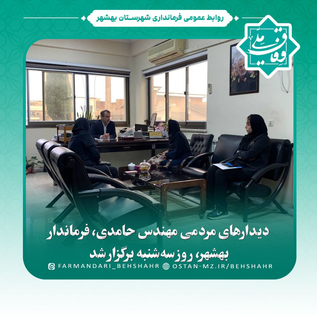 دیدارهای مردمی مهندس حامدی، فرماندار بهشهر، روز سهشنبه برگزار شد