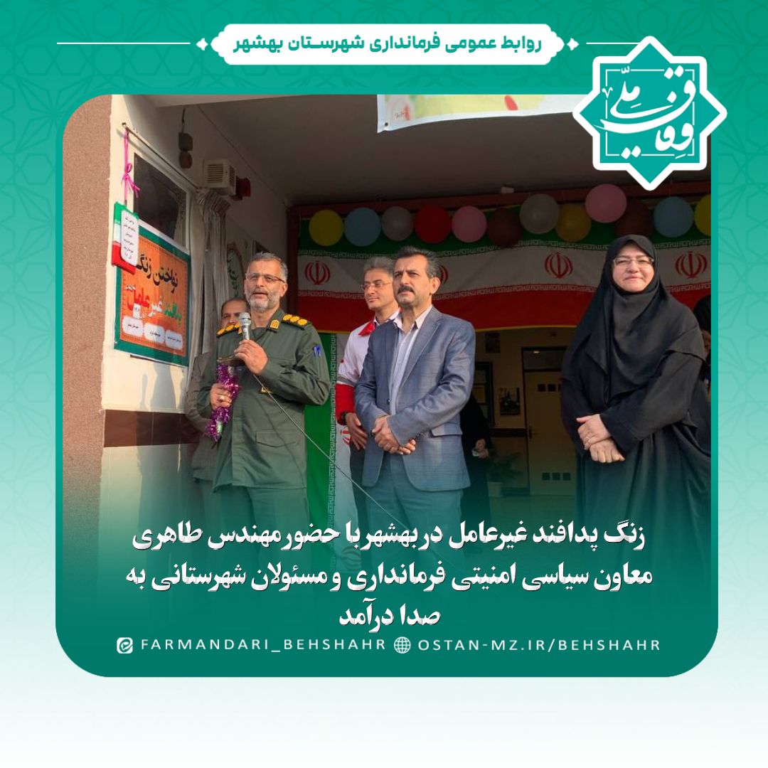 مراسم نواختن زنگ پدافند غیرعامل با حضور مهندس طاهری معاون سیاسی امنیتی فرمانداری شهرستان بهشهر، جناسمی فرمانده سپاه، محمدیان رباطی رئیس آموزش و پرورش و گلزار رئیس جمعیت هلالاحمر برگزار شد. در این مراسم بر نقش آگاهی، آمادگی عمومی و تقویت بنیان خانواده در برابر تهدیدهای نوین تأکید شد.
