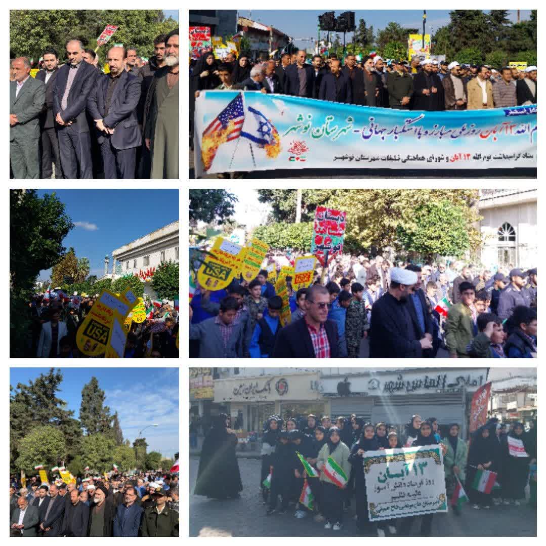 برگزاری باشکوه راهپیمایی یومالله ۱۳ آبان در شهرستان نوشهر با شعار «متحد و استوار، مقابل استکبار»