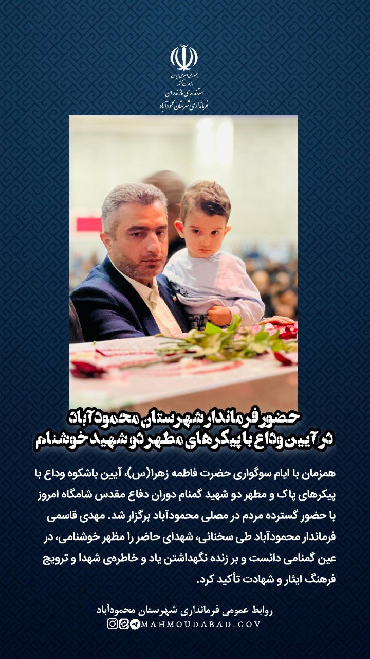 حضور فرماندار شهرستان محمودآباد در آیین وداع با پیکرهای مطهر دو شهید خوشنام