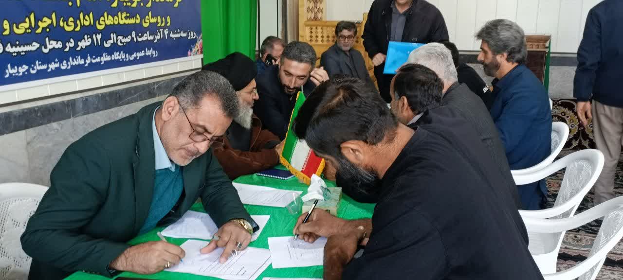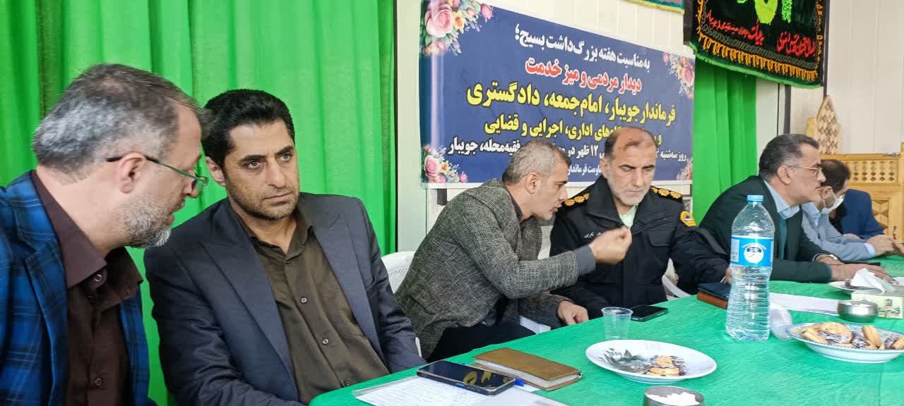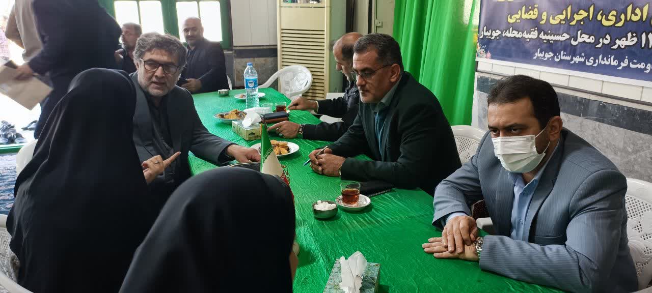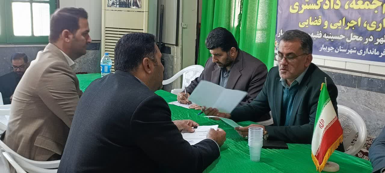✅ به گزارش روابط عمومی فرمانداری، میز خدمت و دیدار مردمی با حضور محمد مدانلو فرماندار شهرستان جویبار، #حجتالاسلام_والمسلمین_سید_مصطفی_محمدی_امام_جمعه، رییس دادگستری، دادستان، جانشین فرماندهی سپاه ناحیه، فرماندهی انتظامی، بخشداران، شهردار و اعضای شورای شهرجویبار، مسئولین شهرستانی، در محل حسینیه فقیهمحله، جویبار برگزارشد.