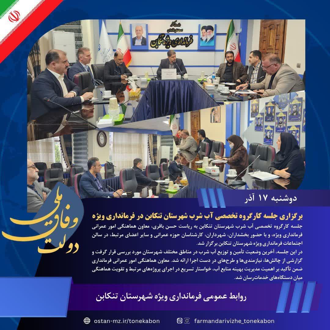 برگزاری جلسه کارگروه تخصصی آب شرب شهرستان تنکابن در فرمانداری ویژه