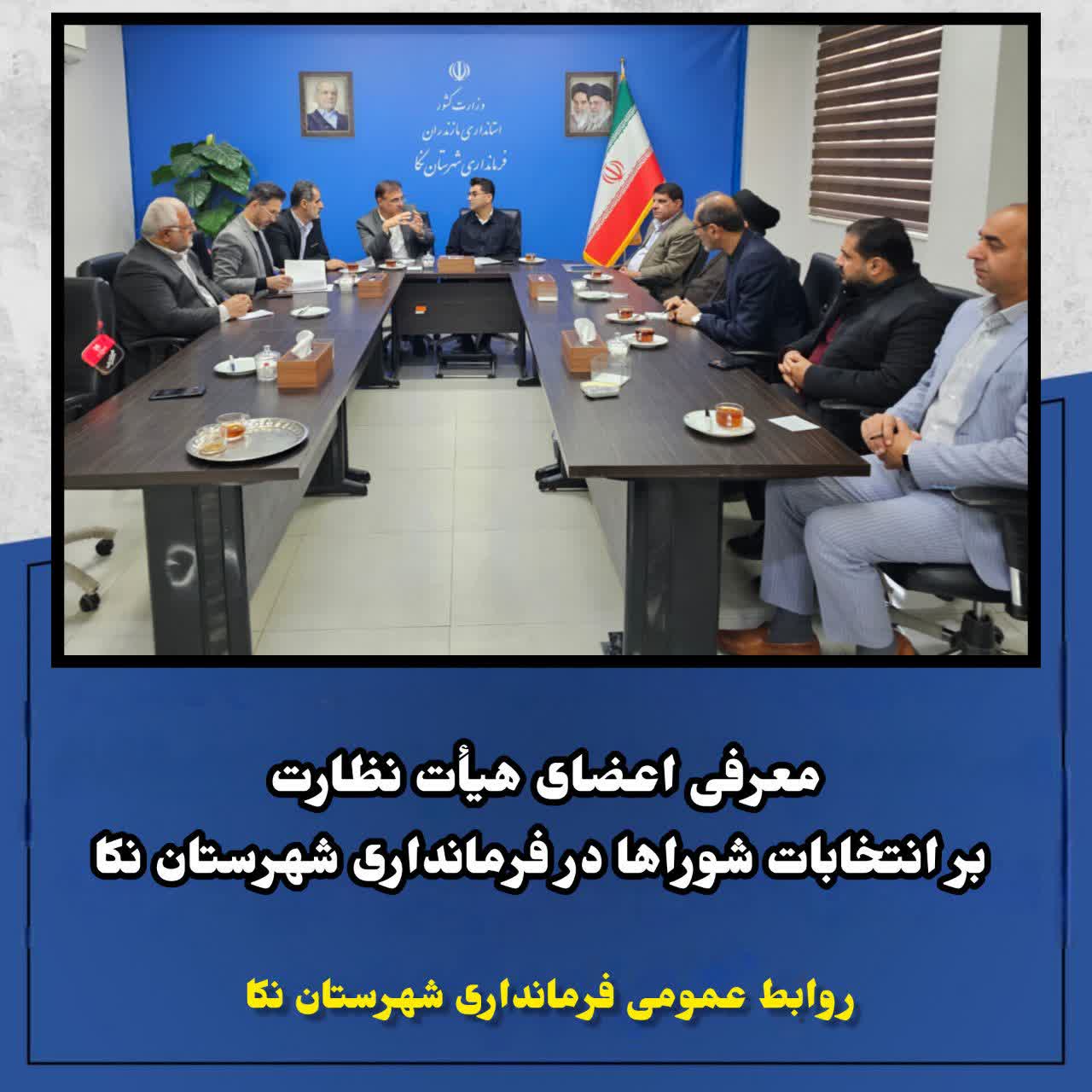 🔸جلسه معرفی اعضای هیأت نظارت بر انتخابات شهرستان نکا با حضور علی طالبی دبیر هیأت نظارت استان مازندران و با حضور دکتر مهدی داودی فرماندار شهرستان نکا و اعضای این هیات صبح یکشنبه در محل فرمانداری برگزار شد.