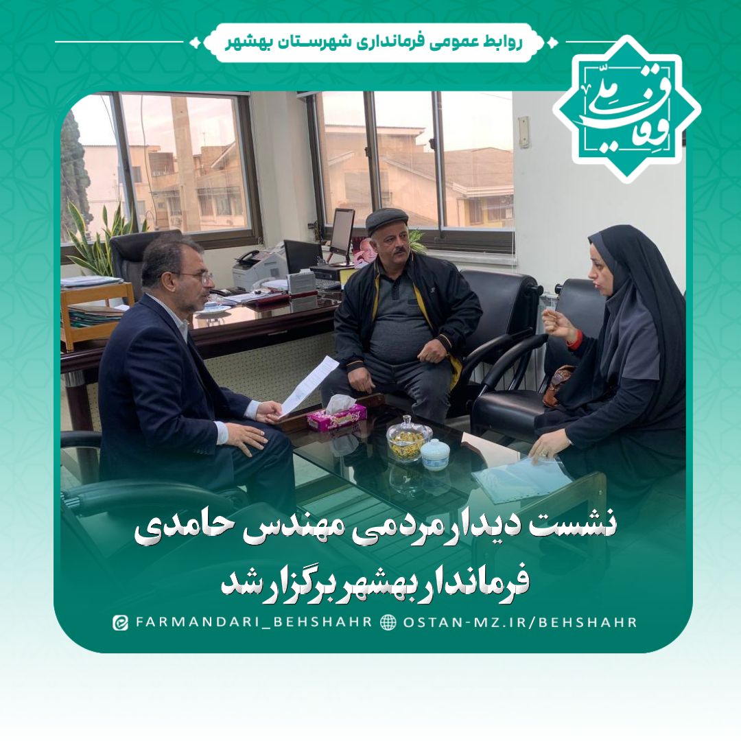 نشست دیدار مردمی مهندس حامدی، فرماندار شهرستان بهشهر، صبح روز سهشنبه با حضور معاونان عمرانی، سیاسیـامنیتی و برنامهریزی در اتاق فرماندار برگزار شد.