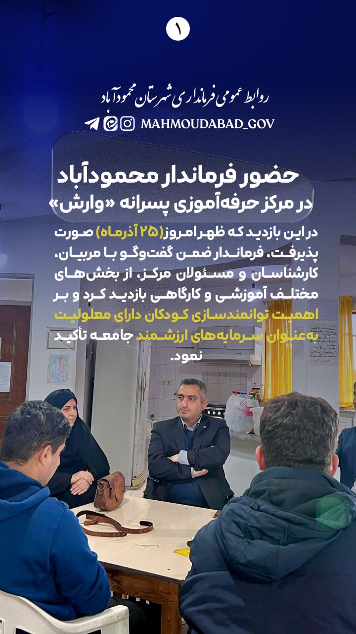 حضور فرماندار محمودآباد در مرکز حرفه آموزی پسرانه وارش