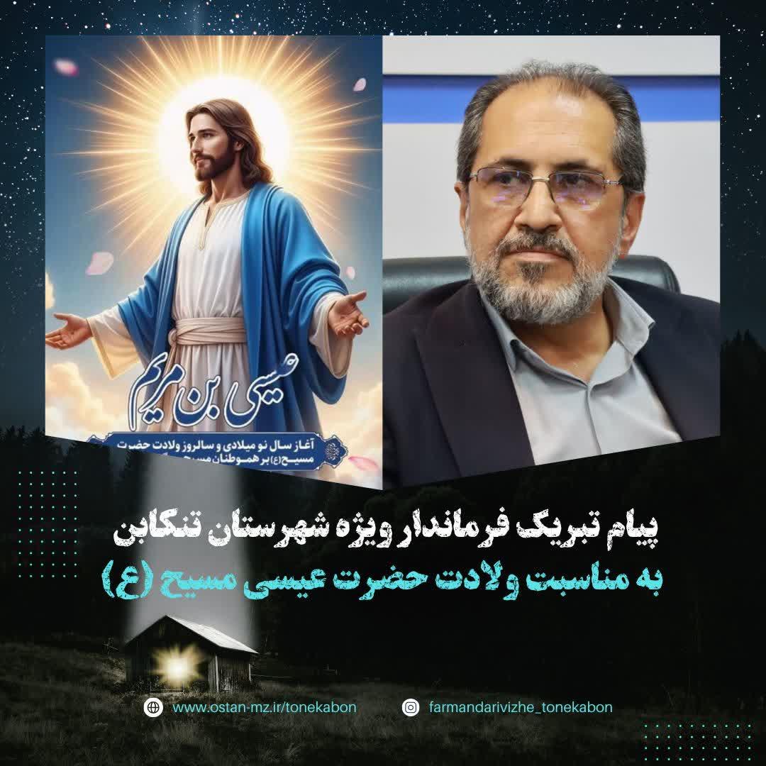 پیام تبریک فرماندار ویژه شهرستان تنکابن به مناسبت ولادت حضرت عیسی مسیح (ع)