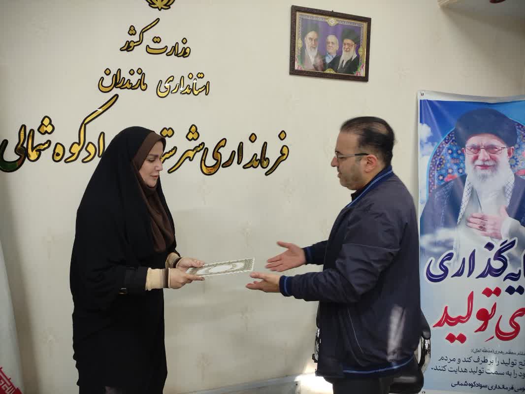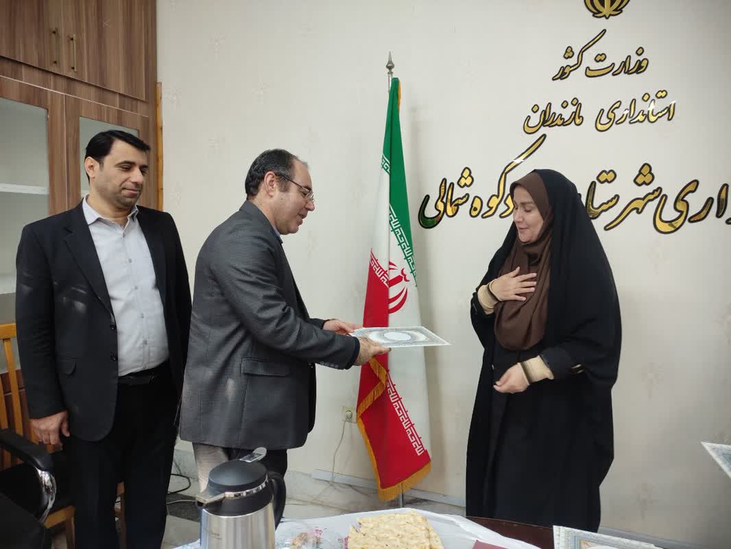 به گزارش روابط عمومی فرمانداری سوادکوه شمالی، به مناسبت ولادت باسعادت حضرت علی (ع)، سرکار خانم دکتر قائمی پاشا، فرماندار شهرستان، در فضایی صمیمی با اهدای لوح سپاس از معاون فرماندار، بخشدار مرکزی، بخشدار نارنجستان و کارکنان زحمتکش فرمانداری و بخشداریها تقدیر و تشکر بهعمل آورد.