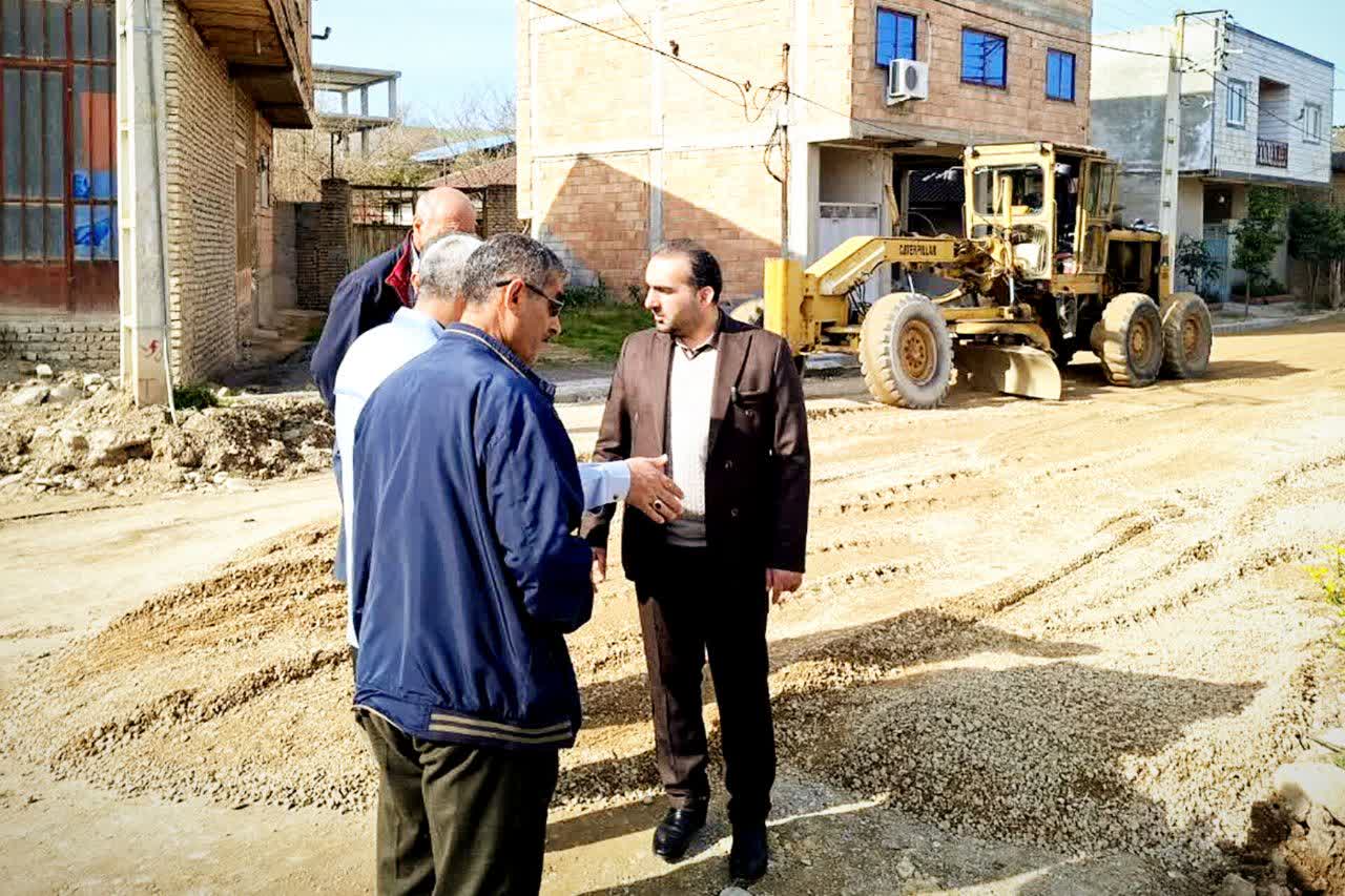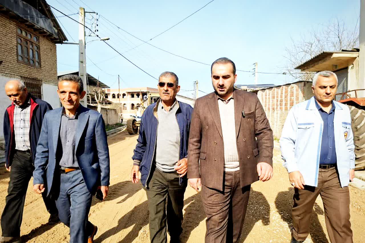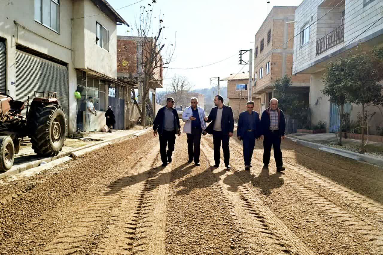 بازدید فرماندار میاندورود از اجرای پروژه آسفالت و بهسازی تیرهای برق در روستای اوسا