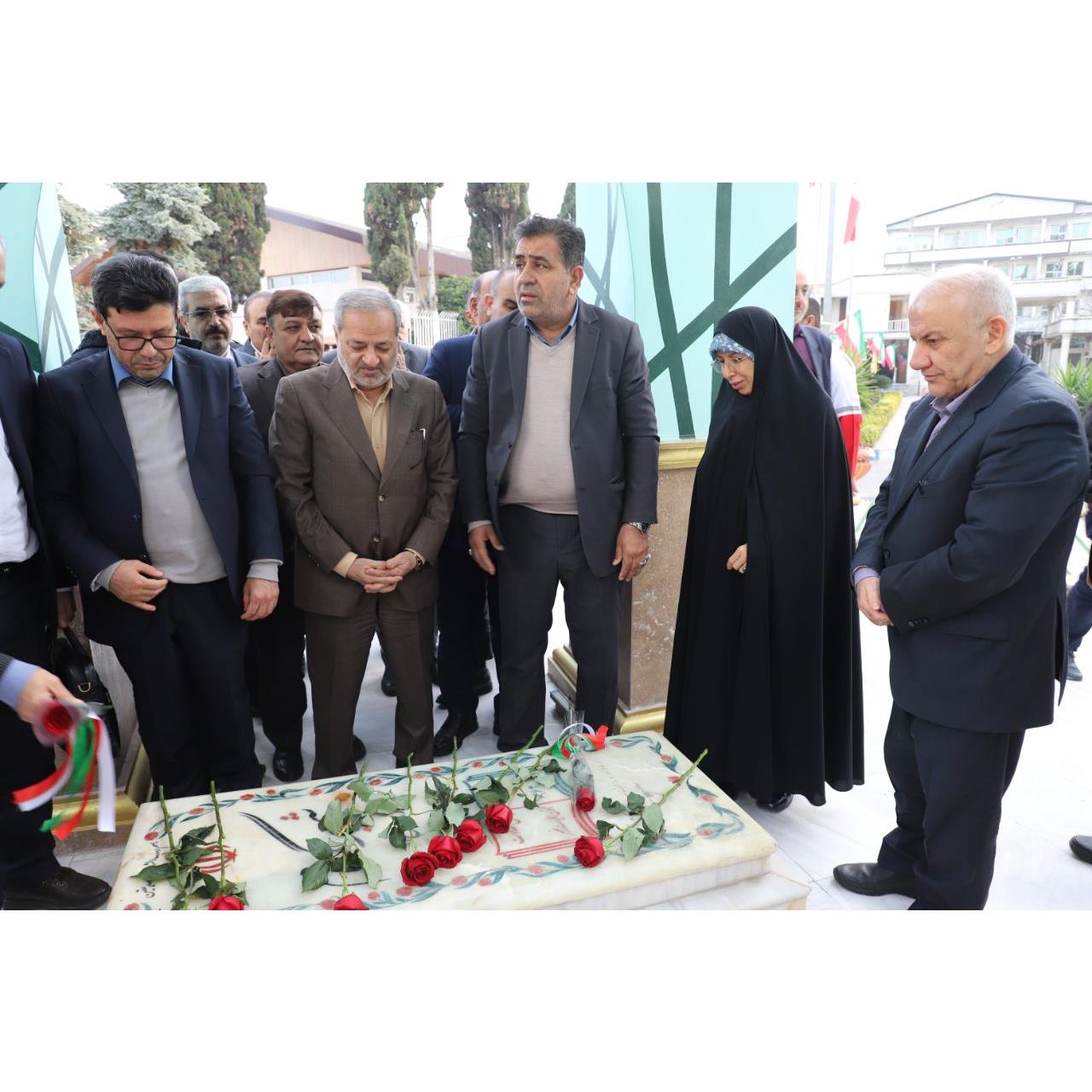 ادای احترام وزیر آموزش و پرورش با همراهی استاندار مازندران به شهید خوشنام استانداری مازندران